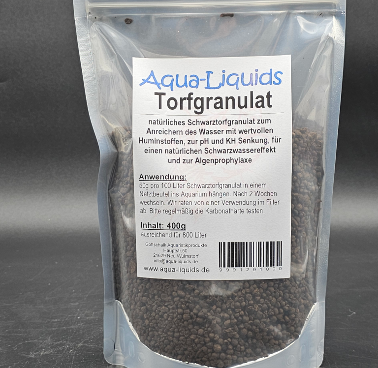 Natürliches Schwarztorfgranulat zum Anreichern des Wasser mit wertvollen Huminstoffen, zur PH- und KH-Senkung, einen natürlichen Schwarzwassereffekt und zur Algenprophylaxe.