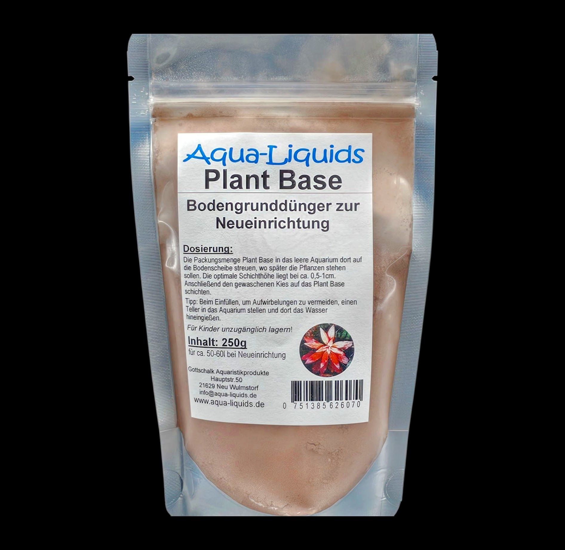 Bodengrunddünger bei Neueinrichtung. Die Packungsmenge Plant Base nur dort, wo später die Pflanzen stehen, auf den leeren Boden des Aquariums streuen. Ausreichend für 50-60 Liter.