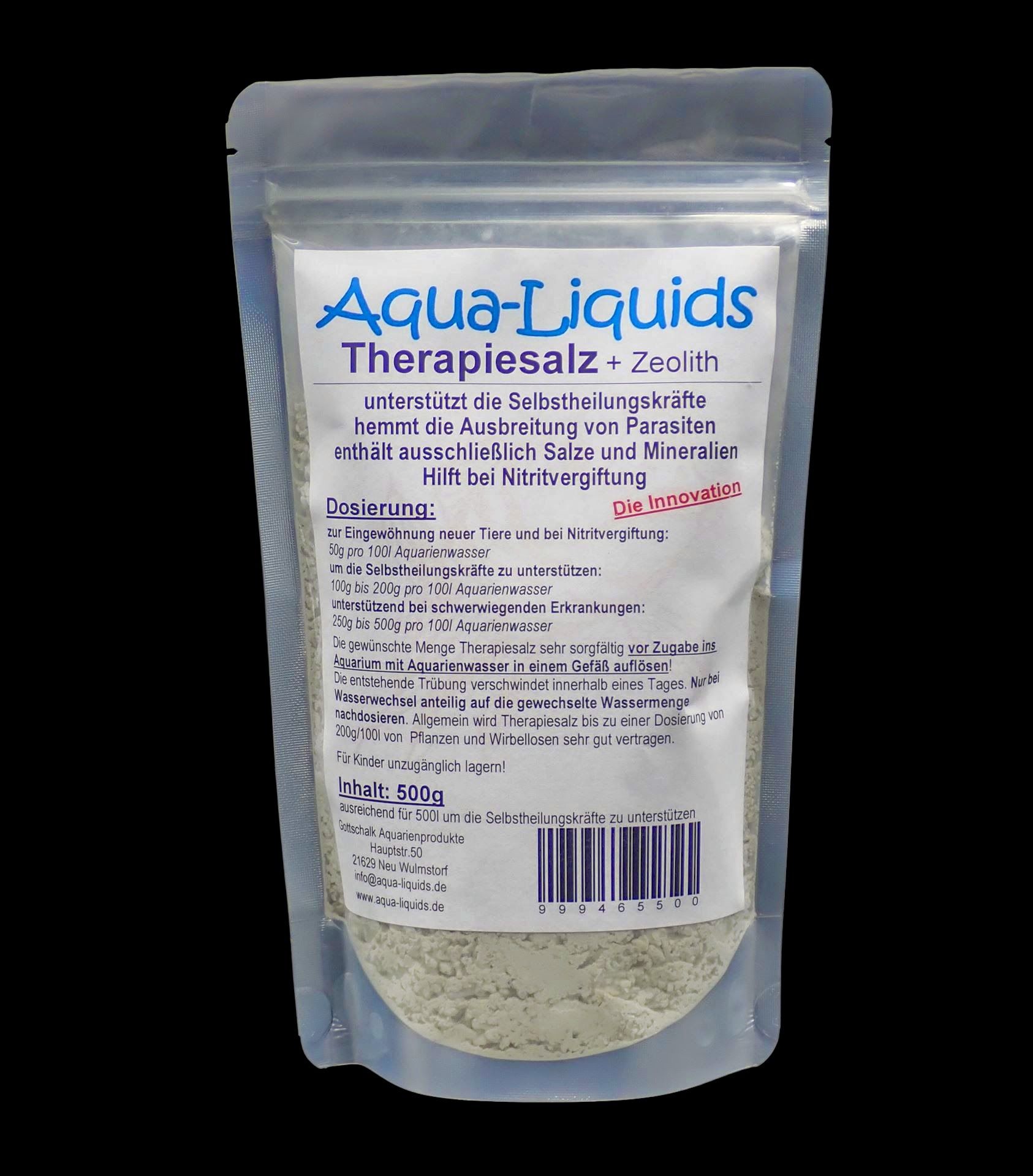 Unterstützt die Selbstheilungskräfte und hemmt die Ausbreitung von Parasiten. Enthält ausschließlich Salze und Mineralien. Hilft auch bei Nitritvergiftung. Hinweis: Die gewünschte Menge Therapiesalz sehr sorgfältig vor Zugabe ins Aquarium mit Aquarienwasser in einem Gefäß außerhalb des Beckens in einem separatem Gefäß auflösen. Eine entstehende Trübung verschwindet innerhalb weniger Tage von selbst.